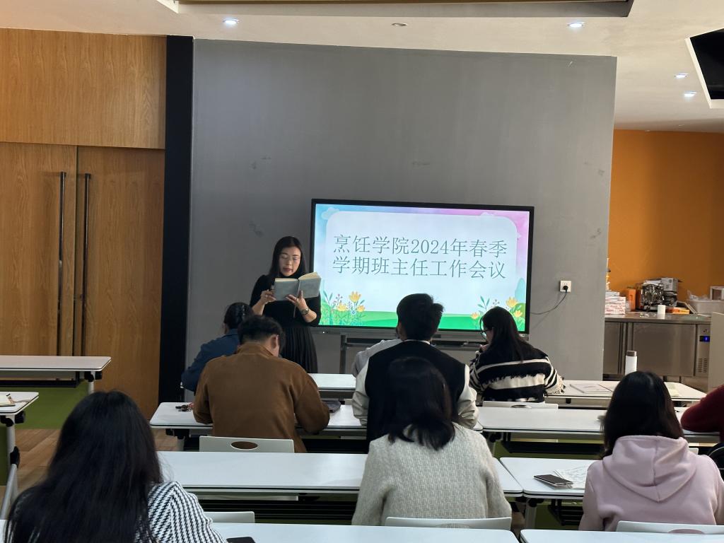 为进一步明确新学期学生管理工作要求,加强班主任队伍建设,提升班主任业务能力,3月3日下午,烹饪学院2024年春季学期班主任工作会议在数字化咖啡实训室举行。学院院长韩昕葵、党支部副书记沈晓文以及全体班主任、辅导员参加了此次会议。