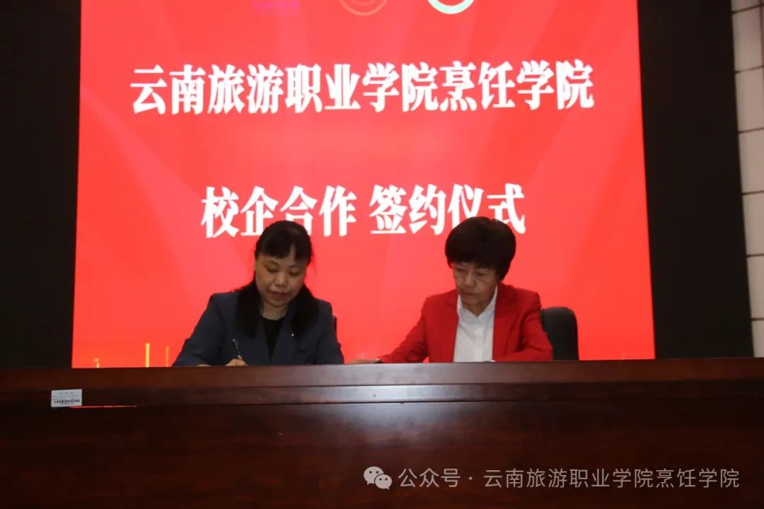 昆明新人人餐饮管理有限公司,该公司作为昆明的餐饮老牌企业在行业内具有较高的知名度和社会影响力,通过深入交流,校企双方就人才培养、就业需求方面达成了共识, 双方本着优势互补、相互协作、共同发展的原则,下一步将持续深化供需对接,不断拓展产教融合、校企合作,提高人才培养质量和学生就业质量。烹饪学院院长韩昕葵与昆明新人人餐饮管理有限公司品牌联合创始人兼总经理龚德宏签署校企合作协议并授牌。昆明新人人餐饮管理有限公司品牌联合创始人兼总经理龚德宏提到,企业与个人的成长相辅相成,要实现这种双赢的局面,同学们需要有正确的心态和方法,把工作当作一种学习和成长的机会,主动承担责任,勇于面对挑战,不断提升自己的能力和素质。