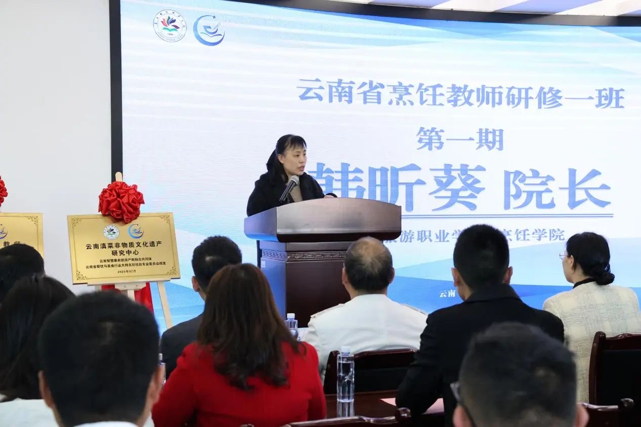 据悉,“云南省烹饪教师培训基地”及“云南滇菜非物质文化遗产研究中心”的成立,致力于实现“三个打通”:一是打通课堂与厨房的壁垒,构建大师引领、实景教学、工学一体的育人模式;二是打通传承与创新的路径,以数字化、标准化手段赋能滇菜非遗技艺的活态保护;三是打通产业与教育的链条,推动人才培养、技术研发、文化传播与市场需求精准对接。