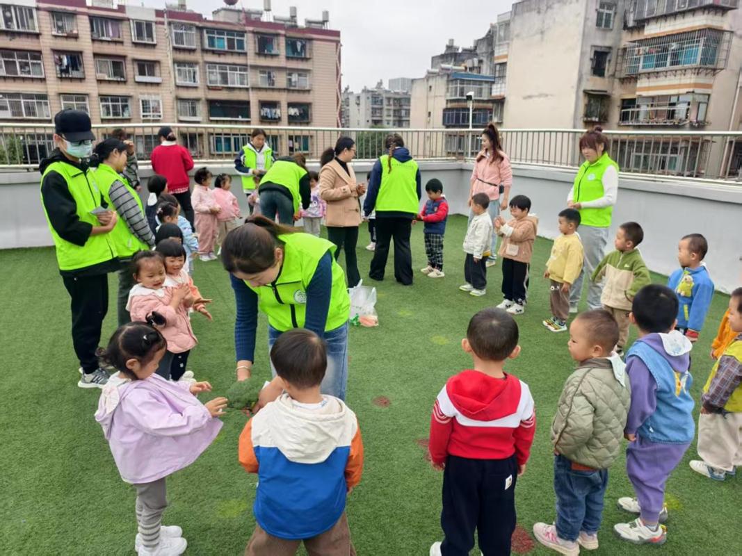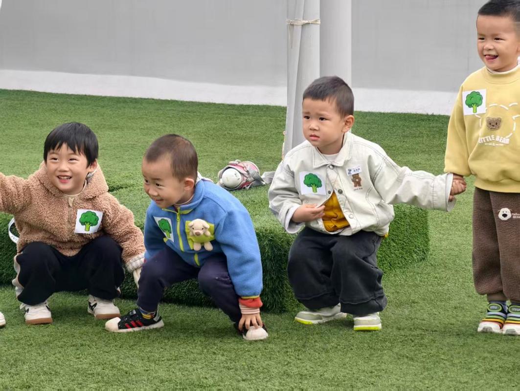 在随后的室外活动中,志愿者组织开展了趣味“蔬菜蹲”游戏。小朋友们按蔬菜种类分组并佩戴对应贴纸,在志愿者和幼儿园老师的带领下积极参与、默契配合。游戏不仅巩固了孩子们对蔬菜的认知,也有效锻炼了他们的反应能力和团队协作意识。