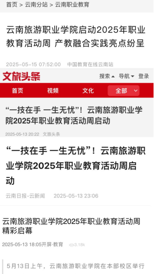 据悉,本次活动还得到了中国教育在线云南站、云南日报-云新闻、开屏·教育、文旅头条等多家媒体的广泛关注和报道。这些媒体通过专题报道、现场采访、视频直播等多种形式,详细介绍了活动的亮点和成果,不仅展示了烹饪学院在非遗传承与职业教育创新方面的积极探索,也提升了活动的社会影响力,让更多人看到了职业教育在传承非遗文化、服务地方经济中的重要作用。