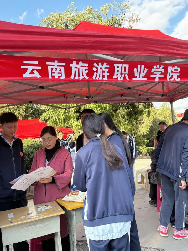 在各地宣传点,周老师严格按照云南省招生政策要求,向当地学生、家长详细介绍学院的专业设置、培养目标、就业发展等核心信息,重点讲解春季招生的报名流程、录取标准等政策。