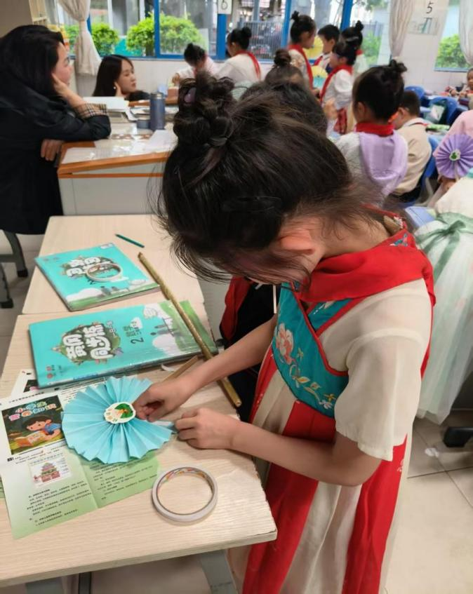 随后的手工体验环节,志愿者与学生分组协作一起完成了画彩蛋、制作端午团扇、咖啡手链、缝制斜挎包、艾草香囊等手工作品的制作。