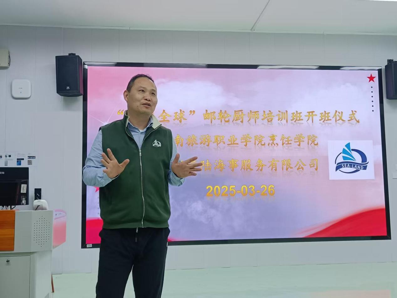 厦门海陆海事服务公司总经理张振捷向同学们详细介绍了邮轮厨师班“理论+实操”教学模式、培训过程中的相关注意事项以及师资配备等情况,要求同学们严格遵守培训班的规章制度,勤奋学习,不仅要扎实学习专业知识,更要掌握实用的职业技能,为未来顺利就业打下坚实基础。