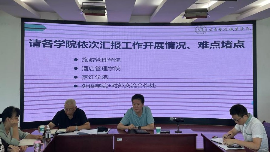 会议旨在深入了解旅游管理学院、烹饪管理学院、酒店管理学院、外语学院、对外合作交流处的任务进展情况以及存在的问题和困难,并提出针对性的解决方案。