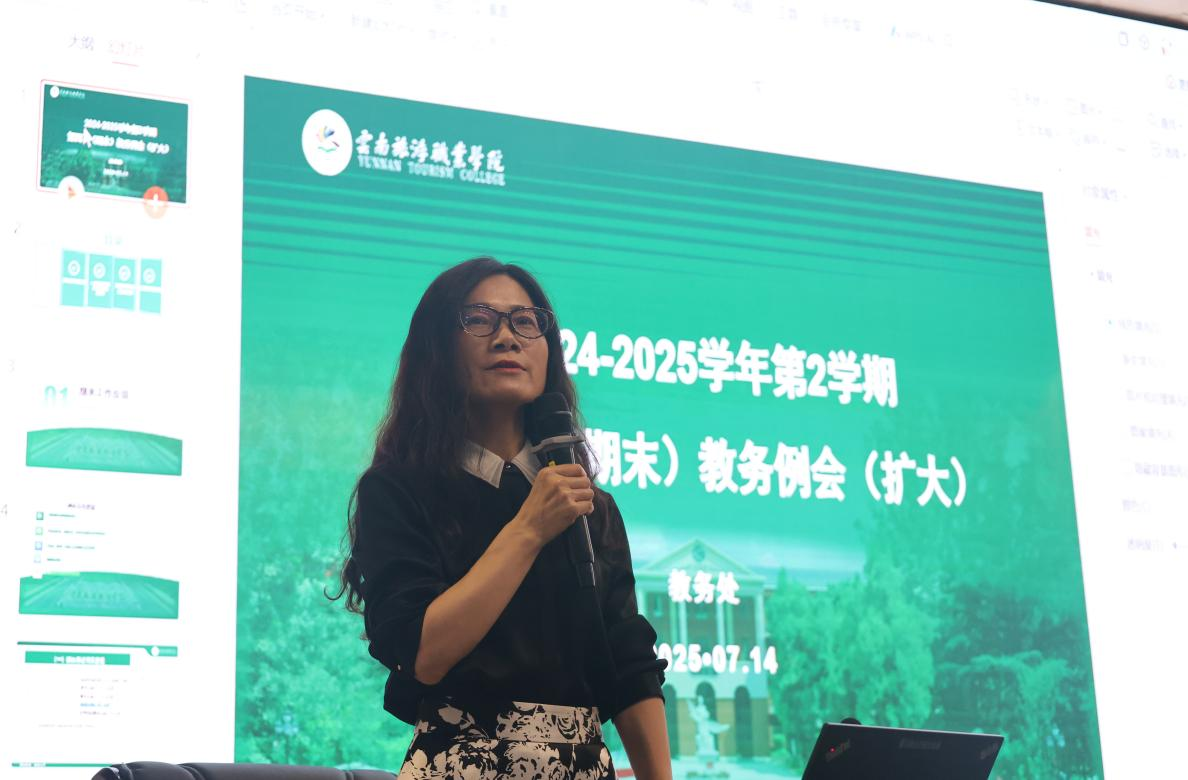 会上,教务处长(兼双高办主任)杨红波首先对春季学期期末教学工作进行复盘总结,通过教风典型案例、期末数据统计展示,及时反馈期末考试组织情况,同时详细说明毕业论文(设计)质量、毕业生成绩审核及相关工作改进情况。随后,她对第二批专业(群)带头人认定工作作出具体要求,对学院各类竞赛的组织开展情况及成果进行了汇报。