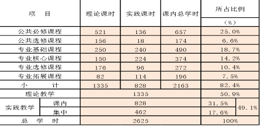 本专业A类课14门、B类课20门、C类课17门,课程标准30门,选修课程306学时,考试课14门,考查课38门。基本情况如下: