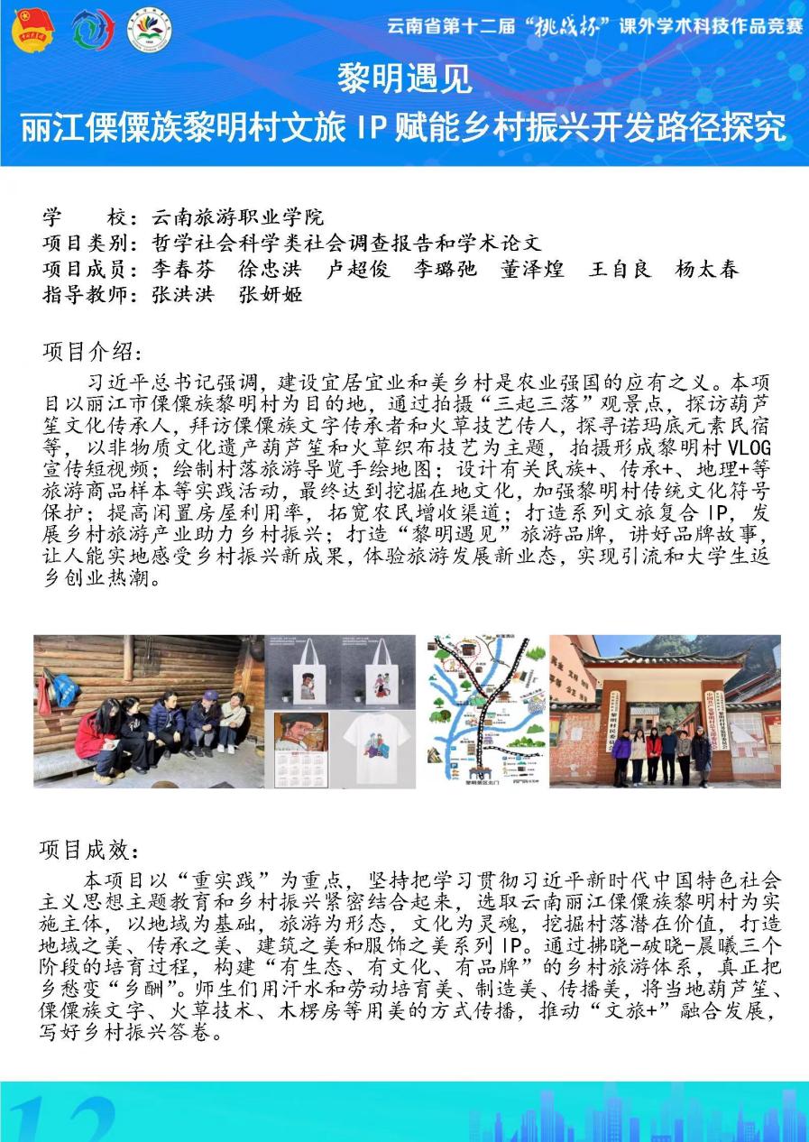 其中,《黎明遇见——丽江傈僳族黎明村文旅IP赋能乡村振兴开发路径探究》项目在6日下午举行的颁奖典礼上作为优秀作品进行现行现场路演展示。