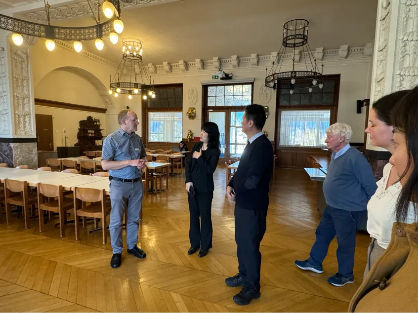 在访问图恩三角洲酒店期间,代表团与该酒店总经理 凯文•福勒(Kevin Furrer)进行会谈交流。会谈中,蔡冰院长表示期望通过此次交流能够促进双方建立良好合作关系。凯文•福勒以其丰富的行业经验和对酒店管理专业的理解,介绍了酒店行业在双元制教育体系下的专业人才培养模式、酒店人才的职业发展路径、酒店行业岗位能力要求等。会后参观了酒店客房、餐饮、会议、康乐等运营区域。