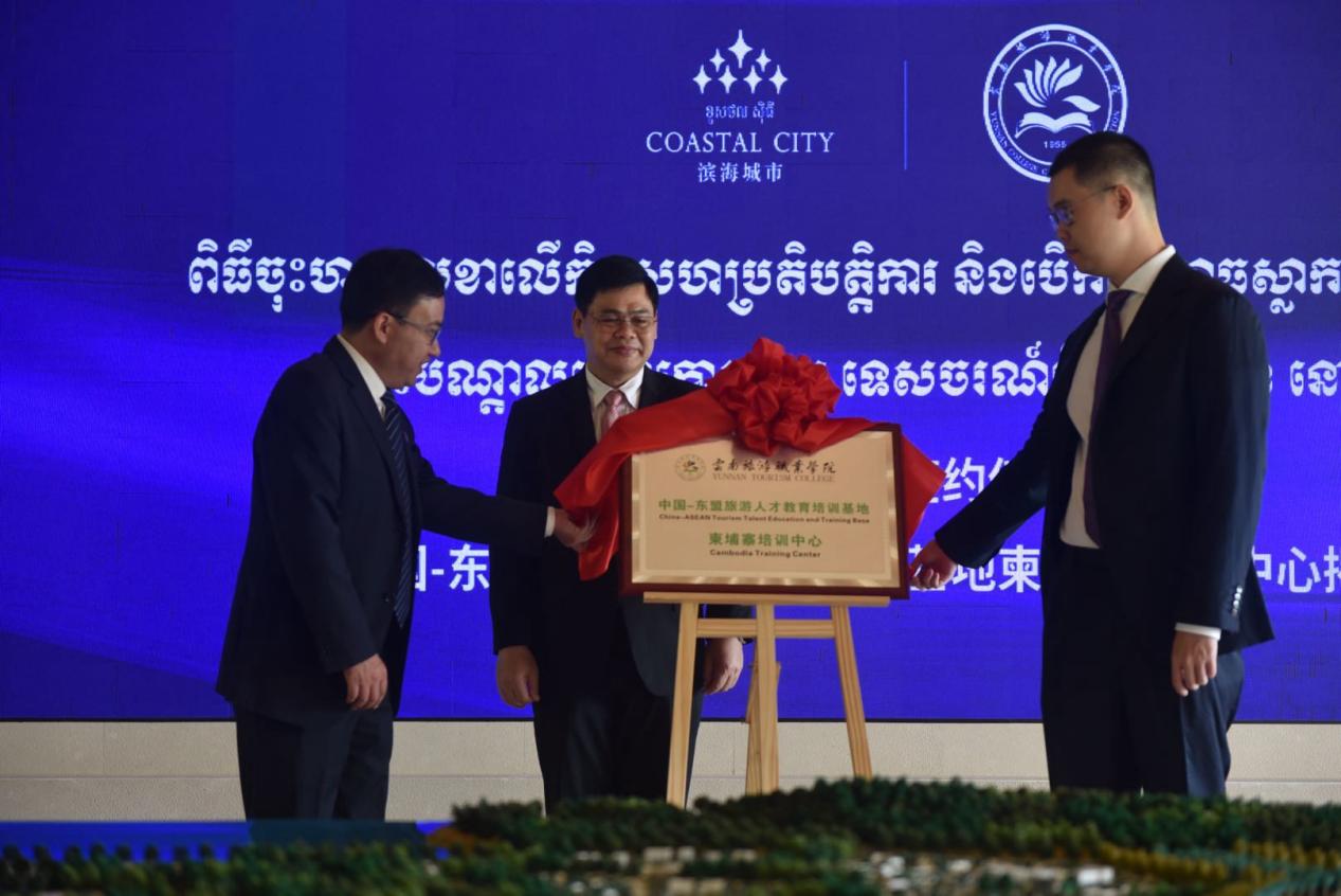 柬埔寨教育、青年和体育部国务秘书H.E.OM ROMNY见证,学校与滨海城市发展集团共同揭牌