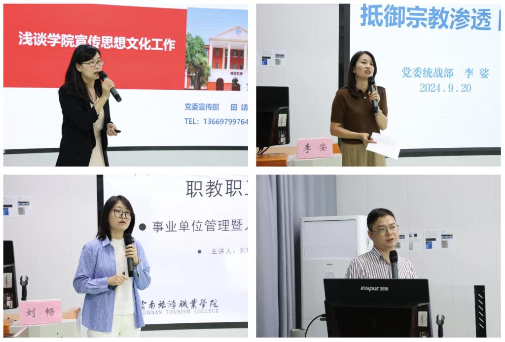 本次培训聚焦应知应会、突出实务操作,精心组织安排了《师德师风教育-以教育家精神引领教师专业发展》《学校历史及发展》《职业院校教师专业化成长及职业生涯规划》《浅谈伟德宣传思想文化工作》《抵御宗教渗透防范校园传教》《事业单位管理及人事管理有关制度解读》《教学管理教学工作应知应会及“双高”建设》《辅导员工作及班主任工作实务》《教师科研能力培训》《职业教育教师能力提升》《高校教师入职心理健康》等14场专题。学校有关领导、部门负责人精心准备、亲自讲授,内容务实、形式丰富,确保了培训内容既接地气又富有前瞻性。