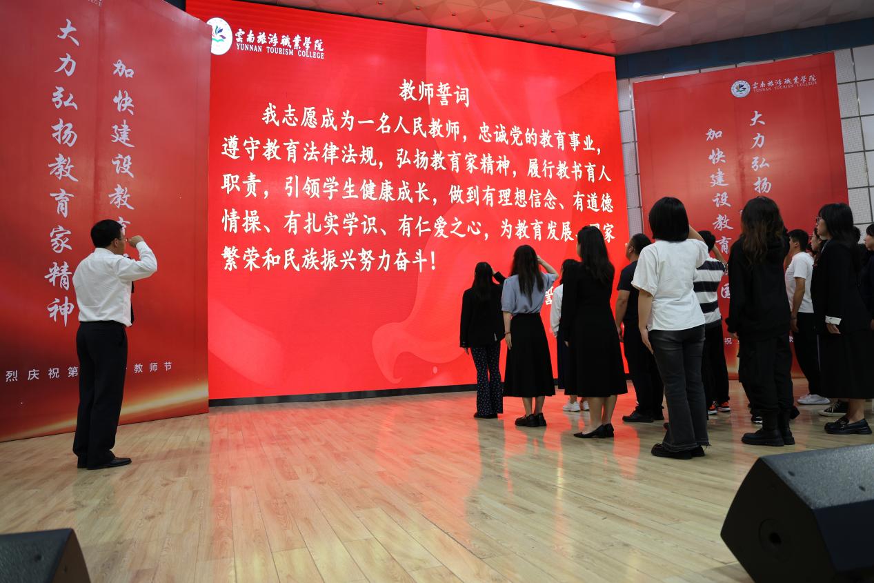 今年教师节,除庆祝大会外,学院还精心组织了“为教师亮灯”、优秀教师展播、师德师风教育、走访慰问教师、“感念师恩献花”等丰富多彩的庆祝活动,大力弘扬教育家精神,展现教师风采,增强教师荣誉感与使命感,营造尊师重教氛围,激励教师潜心教学,共育时代新人,以更加饱满的热情投身教育事业。