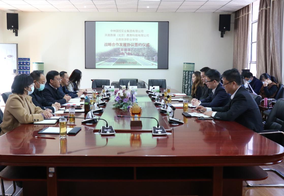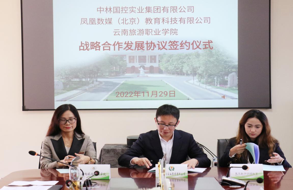 为深入学习贯彻党的二十大精神,贯彻落实习近平总书记关于职业教育的重要指示批示精神,推进学校“十四五”建设发展规划深入实施,进一步深化产教融合、校企合作,增强校企协同服务云南省面向南亚东南亚辐射中心建设以及昆明国际化特大城市建设的能力,共同培养堪当民族复兴大任的高素质技能型人才,11月29日,中林国控实业集团有限公司、凤凰数媒(北京)教育科技有限公司与伟德成功牵手,签署校企战略合作发展协议。签约仪式由副校长王霞主持。