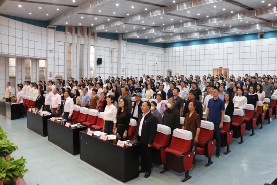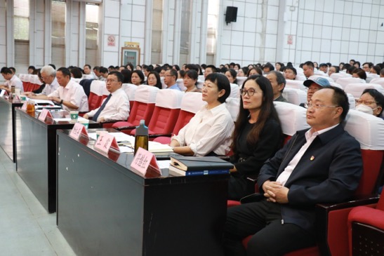 党委书记王翔,党委副书记、院长蔡冰等学院领导班子成员出席大会。全体教职员工、离退休老教师代表和学生代表等参加大会,大会由蔡冰主持。