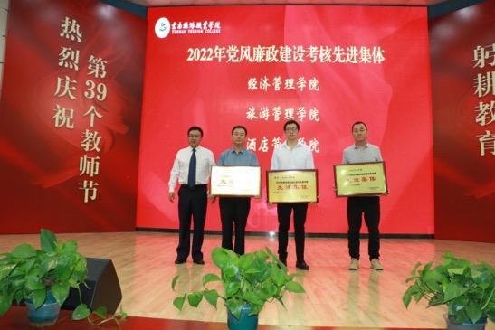 党委书记王翔发表了热情洋溢的教师节祝辞。他代表学校向所有受到表彰的先进集体和个人表示热烈祝贺,向奋战在各条战线上,为学院事业发展倾注了情怀和心血的全体教职员工和离退休老同志致以节日的问候,向近两年加入旅院教师队伍的新同志表示诚挚的欢迎!王翔指出,过去的一年,学院在深入学习贯彻党的二十大精神中,不断回归“技能报国、人才强国”的教育理念;在接受上级政治巡察中不断提高政治站位;在梳理问题和全面整改中不断推动学院内涵式高质量发展;在主题教育中不断增强以学铸魂、以学增智、以学正风、以学促干的能力本领;在“提质培优”和推进“省级高水平专业群”建设中凸显出强烈的历史使命感和敬业担当精神,做“四有好老师”正在成为广大教师的共同追求。