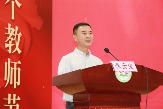 焦云宏老师立足工作实际代表教师发言,他现场和我们分享了自己从事教育教学工作的难忘经历,充分表达了作为一名老师对教育工作的热爱,表达了对学校的热爱,表达了对学生的关爱和希望学生成长成才的期许。