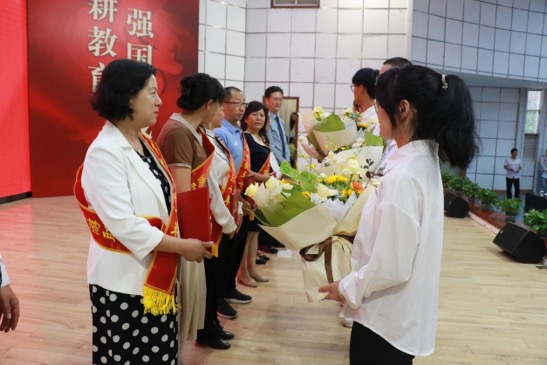 大会在庄严的国歌声中拉开了帷幕,全体起立,奏唱国歌。随后,学校领导为7名“光荣从教30年”教师颁发荣誉证书和绶带,学生代表为“光荣从教30年”教师们献上鲜花并表达谢意。