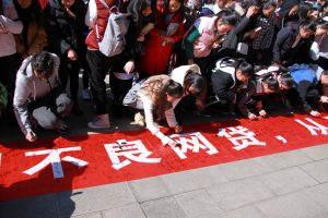 根据学院消防安全工作会议安排,为切实提高学生网络安全意识,12月21日学院团委在和谐广场积极组织开展了以“迎2018,抵制不良网贷,从我做起”为主题的签名活动。各二级学院团总支,院学生会、青年志愿者协会学生代表共1000余人参加了活动。