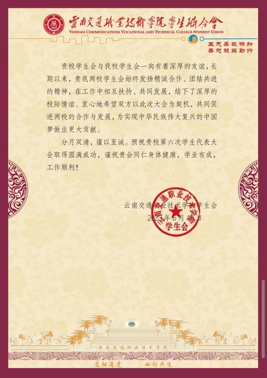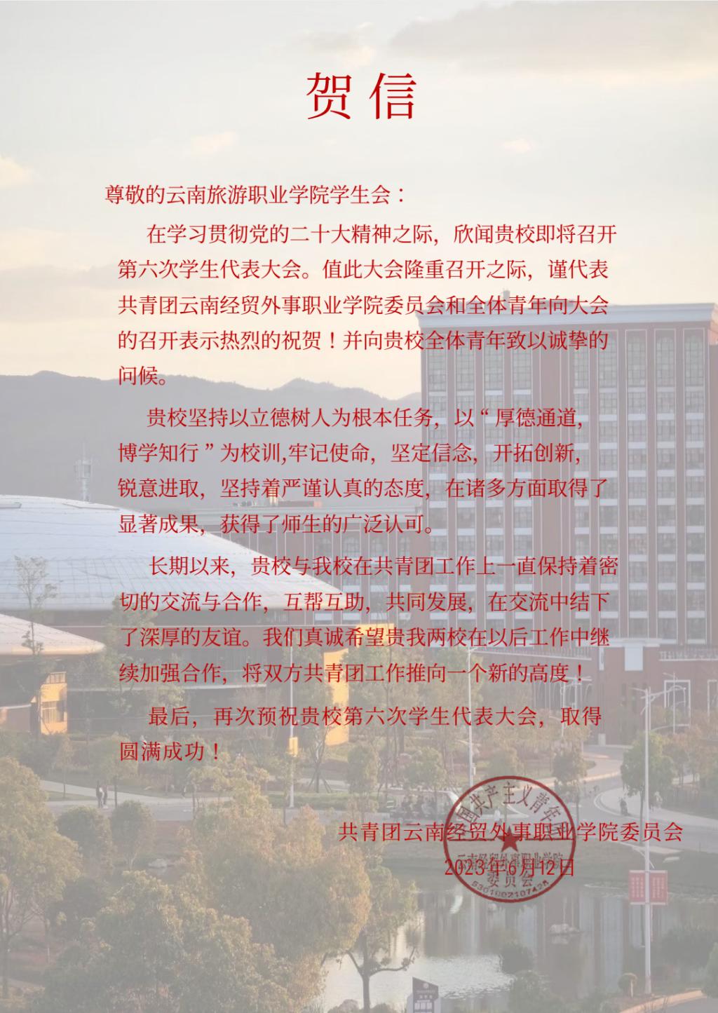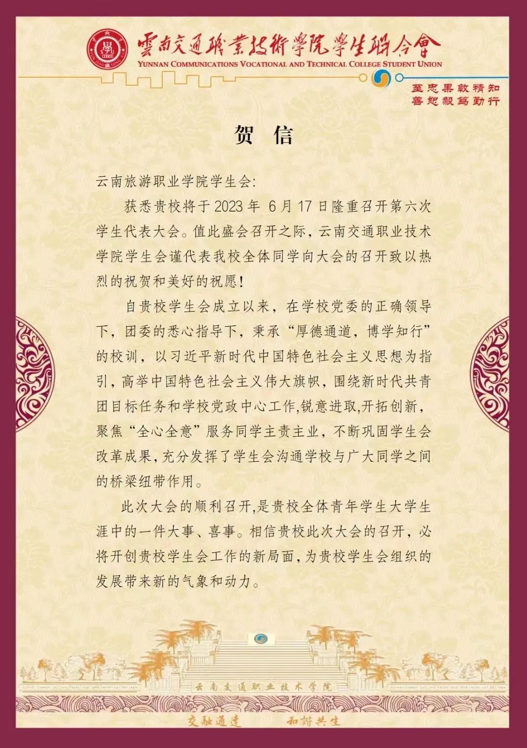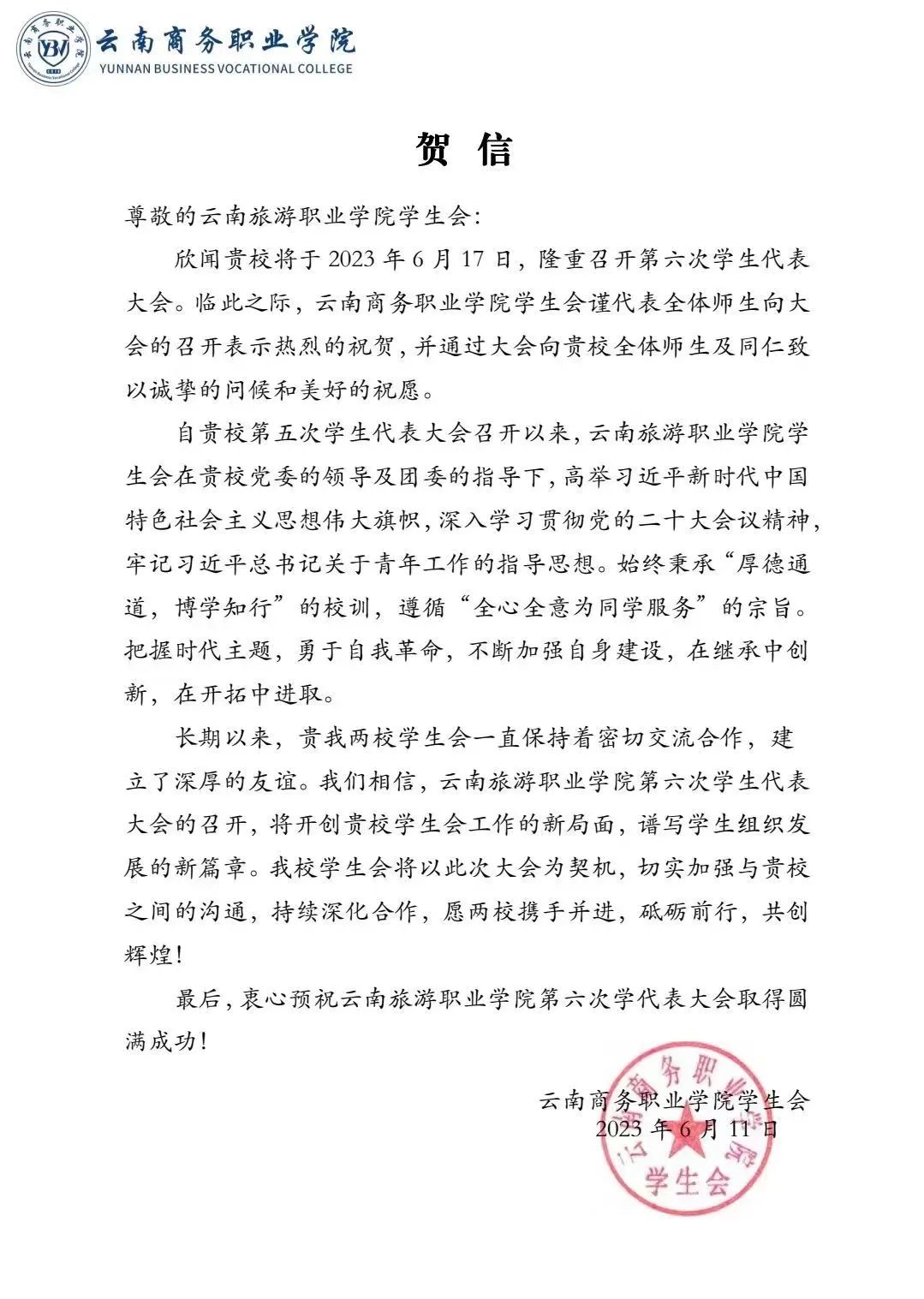 此外,在bevictor伟德国际1946官网第六次学生代表大会即将召开之际,各兄弟院校学生会向伟德学生会发来贺信,预祝大会圆满成功。