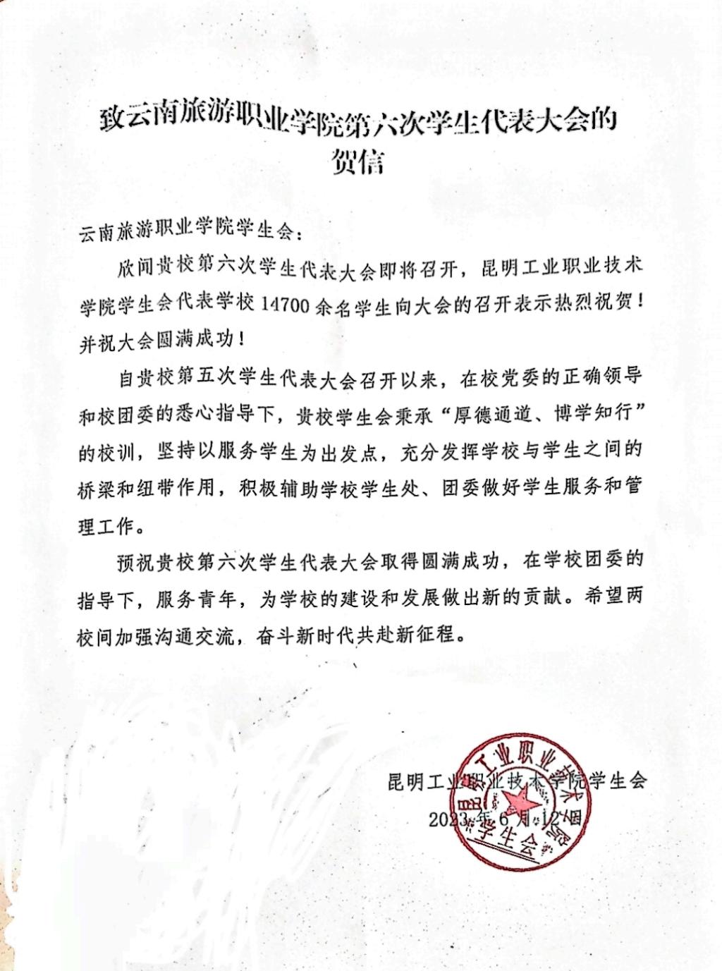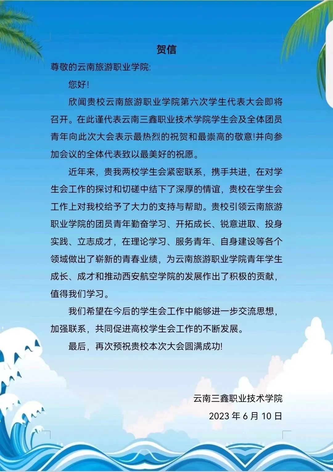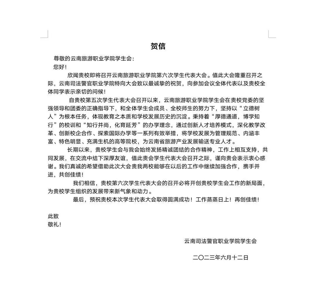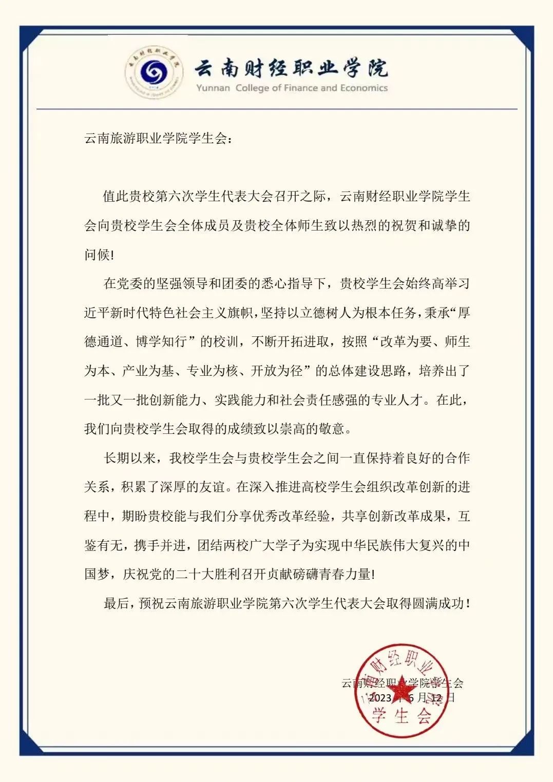 此外,在bevictor伟德国际1946官网第六次学生代表大会即将召开之际,各兄弟院校学生会向伟德学生会发来贺信,预祝大会圆满成功。