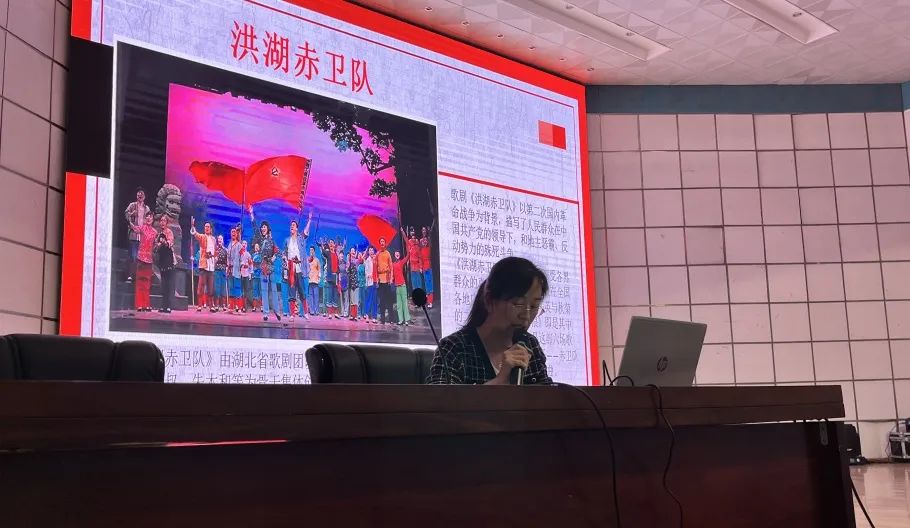 活动围绕“洪湖赤卫队”展开。歌剧《洪湖赤卫队》以第二次国内革命战争为背景,描写了人民群众在中国共产党的领导下和地主恶霸、反动势力的殊死斗争。在刘老师的生动讲述下,我们感受到了洪湖赤卫队的抗争精神,听到了经久不衰的经典唱段;我们看到了时代英雄的英勇斗争,看到了党的伟大历程。