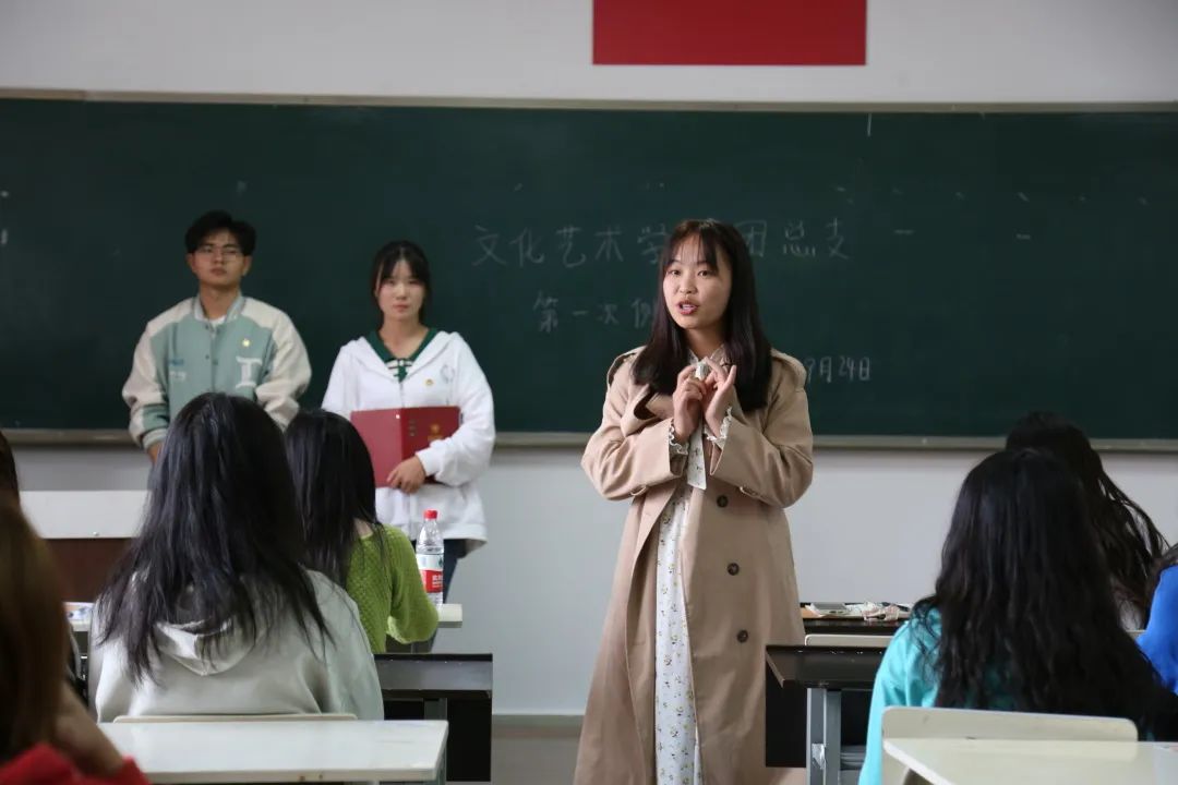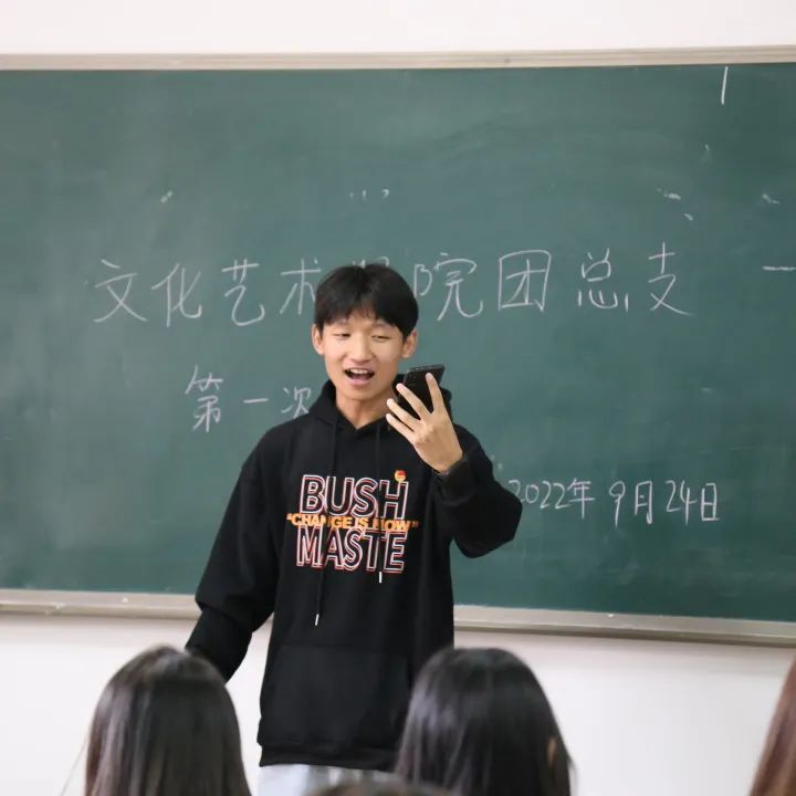 团总支5个部门部长也在会议上进行了以个人经历、部门职责、未来规划相结合的精彩动员演讲,要求新团干们在今后的工作中做到认真严谨、清劳务实、事必躬亲,全心全意服务于文化师生,并在服务过程中锻炼提升自我能力。不负习近平总书记嘱托“不负韶华,不负时代,不负人民,在青春的赛道上奋力奔跑,争取跑出当代青年的最好成绩。”会议现场掌声雷动,各部门蓄势待发为创造更好的文化艺术学院而努力。