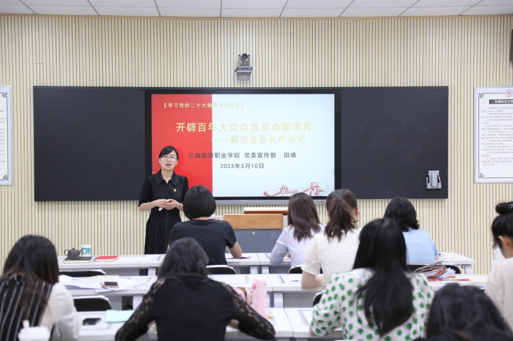 为深入开展学习贯彻习近平新时代中国特色社会主义思想主题教育和党的二十大精神,教育引导党员从思想上正本清源、固本培元,不断提高政治判断力、政治领悟力、政治执行力,根据《中共bevictor伟德国际1946官网委员会关于印发2023年度领导干部联系党支部和服务师生工作方案的通知》(云旅院党〔2023〕10号)文件精神,5月10日,学校党委委员、宣传部部长田靖到文化艺术学院党支部开展党风廉政建设专题工作会,指导党支部上半年意识形态分析研判工作,并为全体党员讲授专题党课。