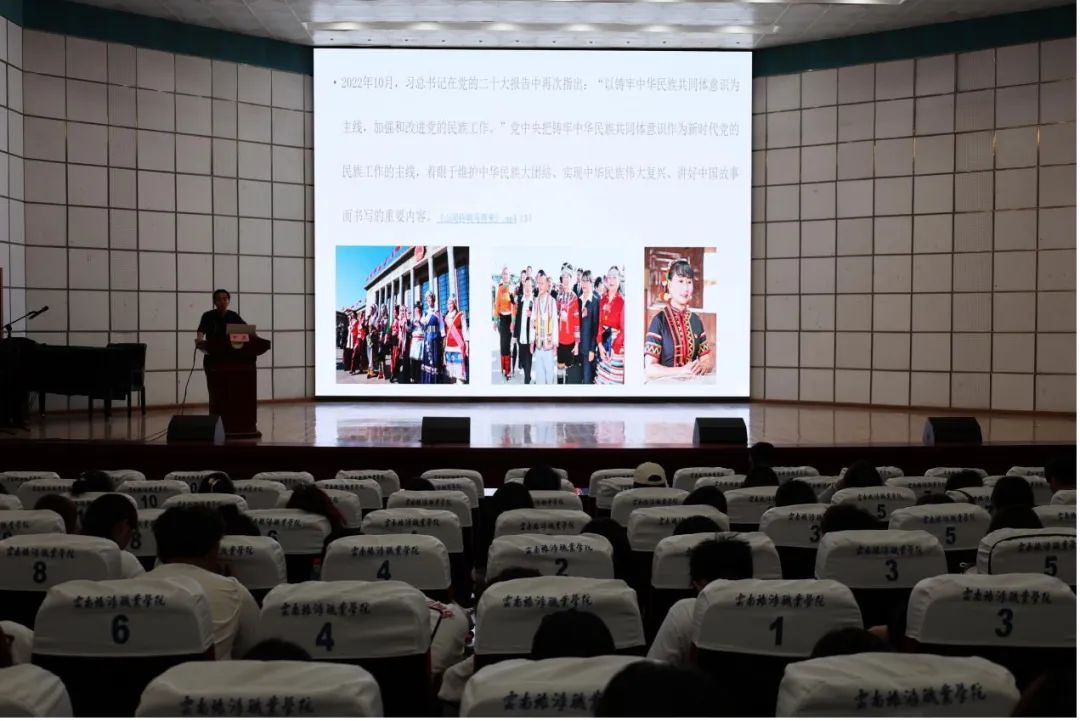 本次张桂梅思政大讲堂是bevictor伟德国际1946官网创新理论学习形式、多措并举办好思政大课的具体实践。学校党委副书记王敏希望现场老师和同学们在以后的学习实践中,要全面树牢正确的国家观、历史观、民族观、文化观、宗教观,增进对伟大祖国、中华民族、中华文化、中国共产党、中国特色社会主义的认同,不断巩固中华民族共同体思想基础,把习近平总书记关于铸牢中华民族共同体意识的各项指示要求学习好、贯彻好、落实好,让民族团结之花扎根在旅院,绽放在旅院。