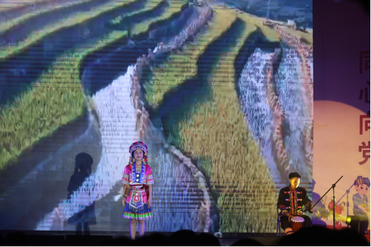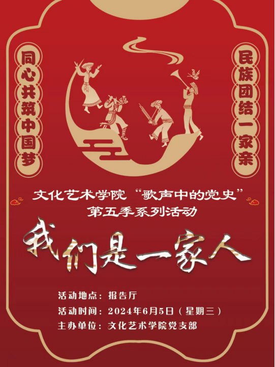 本次活动的主题为《我们是一家人》,本次演出以各个民族为背景,展现了民族力量,歌颂了中华民族伟大精神。在党的历史长河中,那些激昂的歌曲如同一座座丰碑,铭刻着党的光辉历程和人民的伟大奋斗。让我们在歌声中重温党史,铭记历史,不忘初心,继续前进。活动以汉族、白族、傣族、彝族、佤族、哈尼族、景颇族、拉祜族、黎族、藏族等十个民族作为载体,用合唱、独舞、群舞、男生独唱、女生独唱、男女对唱、二胡独奏等音乐形式演绎出各民族不同的文化,更彰显民族团结与文化交流。