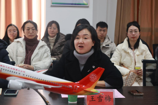 参观结束后,双方教师齐聚7楼会议室,开启空中乘务专业建设与党建融合发展交流活动。活动由航空学院院长蒋艳红主持,她对伟德一行的到来表示热烈欢迎,并简要介绍了本次活动的目的与流程。