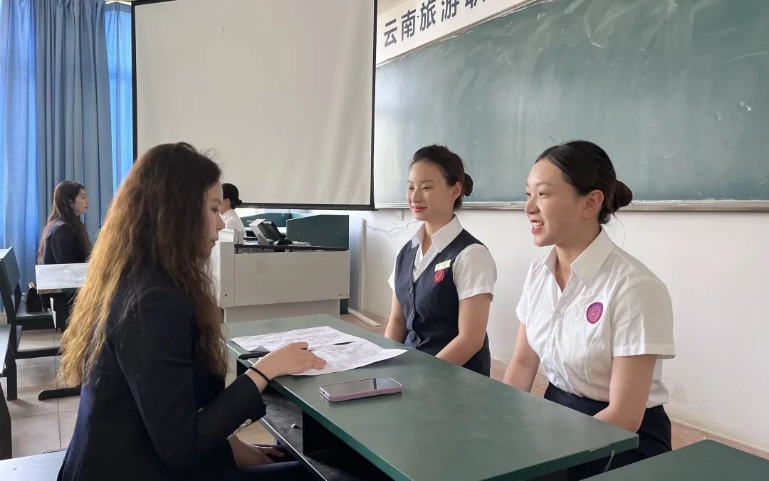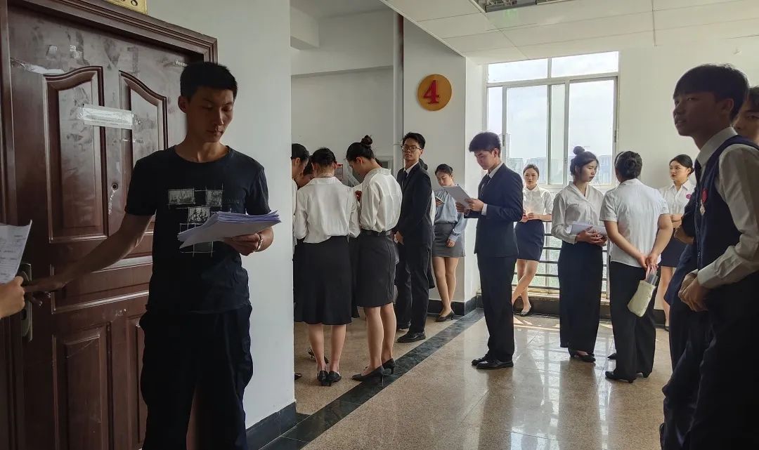 招聘会现场,好利来有限公司负责人曲汶婷、邓旭敏通过面对面沟通交流的方式为同学们介绍了公司概况、职业发展方向、员工福利待遇和人员需求,全方位的为同学们展现出好利来有限公司的企业优势。介绍完后,同学们将填好的简历交与面试官,随后在教室外等待面试。面试过程中,同学们积极配合,主动与面试官进行沟通交流,提出自己的想法,踊跃展现自身优势。