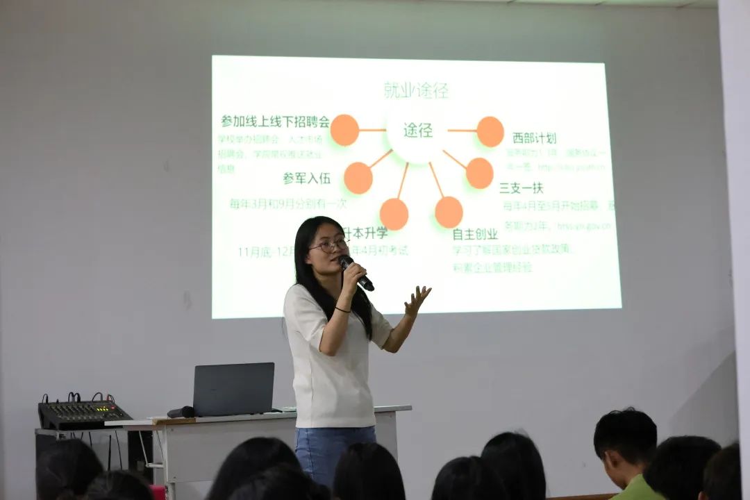 随后,辅导员李情老师针对就业材料进行培训,从就业的意义、就业形势分析、就业途径和就业材料4个方面切入,详细说明为什么要就业,可以通过哪些途径就业,就业应该准备的材料以及就业的多种注意事项等,切实助力2024届毕业生就业。