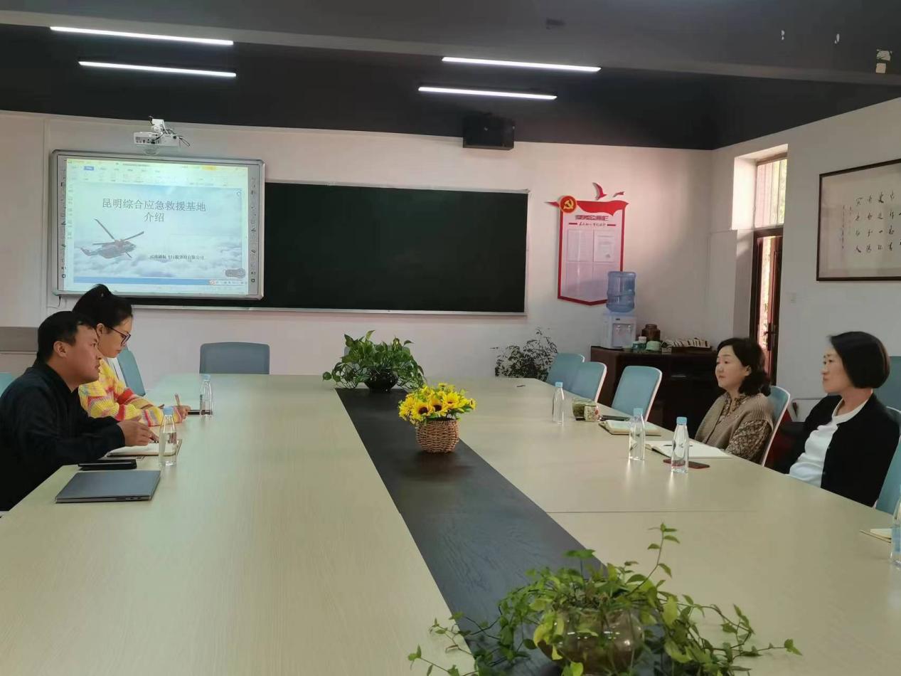 10月24日,文化艺术学院院长王雪梅、党支部副书记常虹与云南通航飞行服务站有限公司负责人在艺术楼207洽谈学生实习和就业事宜。
