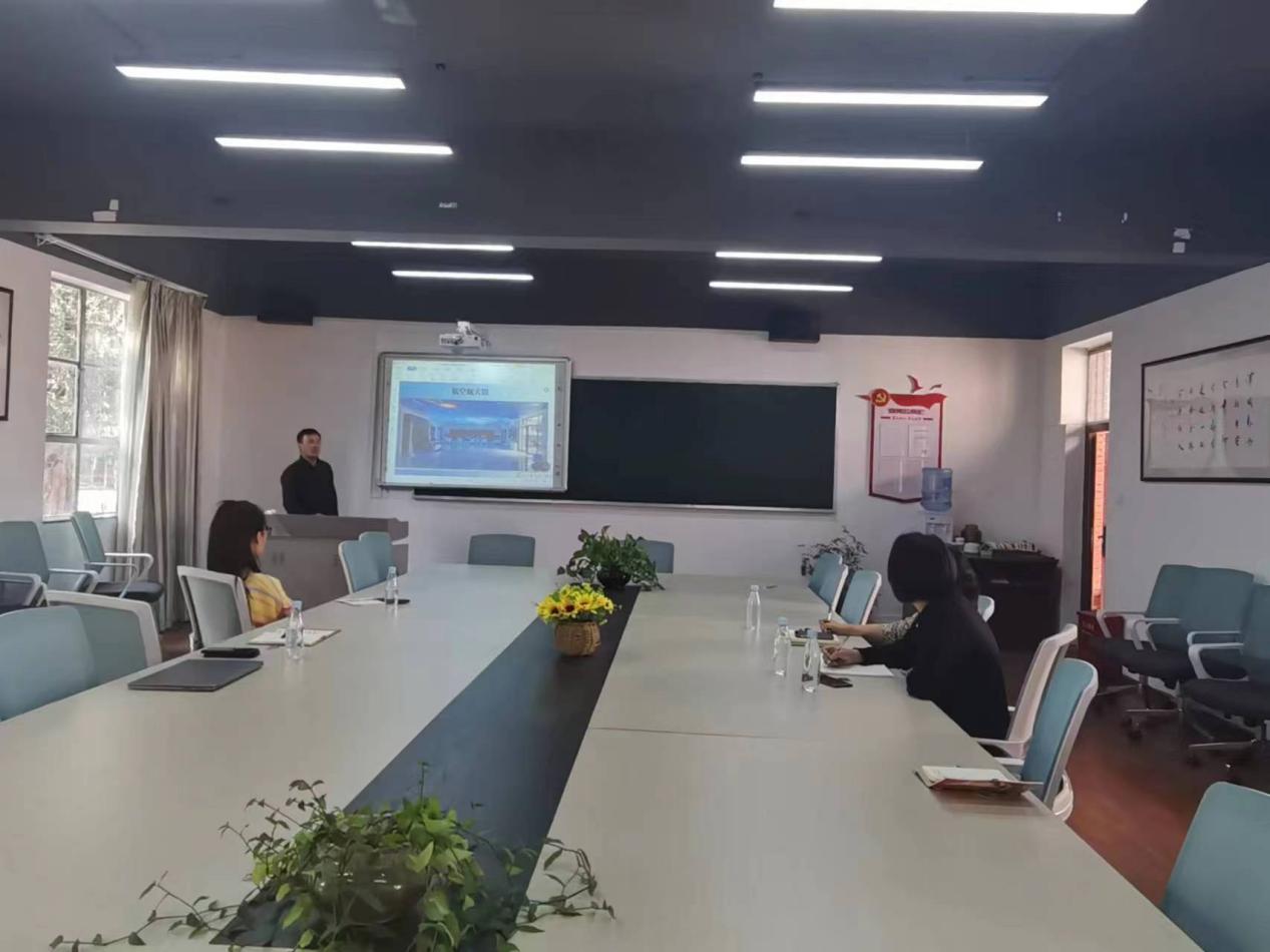 王院长向企业方介绍学院专业情况,重点介绍空中乘务、高速铁路客运服务专业的学生情况。企业负责人也介绍了公司基本情况、用人需求和薪资待遇情等况。