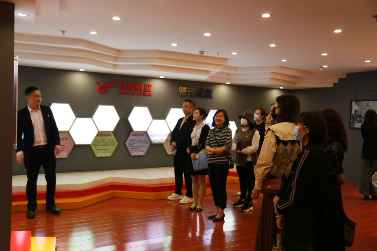 一、昆明航空的朱俊良总经理带领乘务教研室及党员教师们来到昆航大楼的9楼进行了昆航发展的企业博物馆参观,由朱总为老师们进行了昆明航空历史发展的相关介绍。