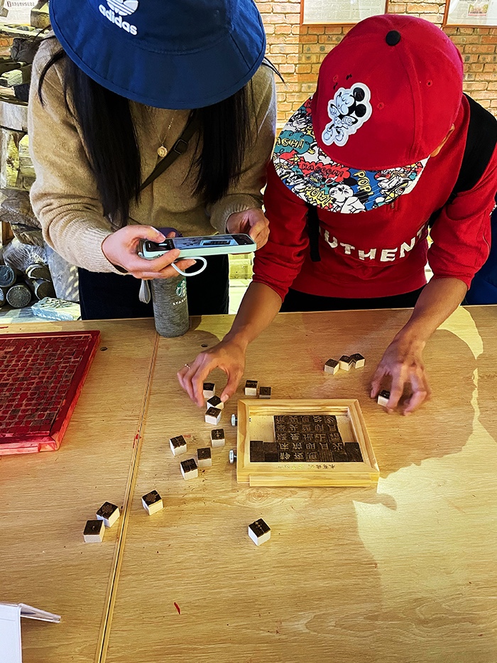 艺术设计教研室的老师们带领大家体验的活字手工印刷的排字和印刷过程,大家在体验的过程中感知前人印刷之不易,要珍惜印刷品。