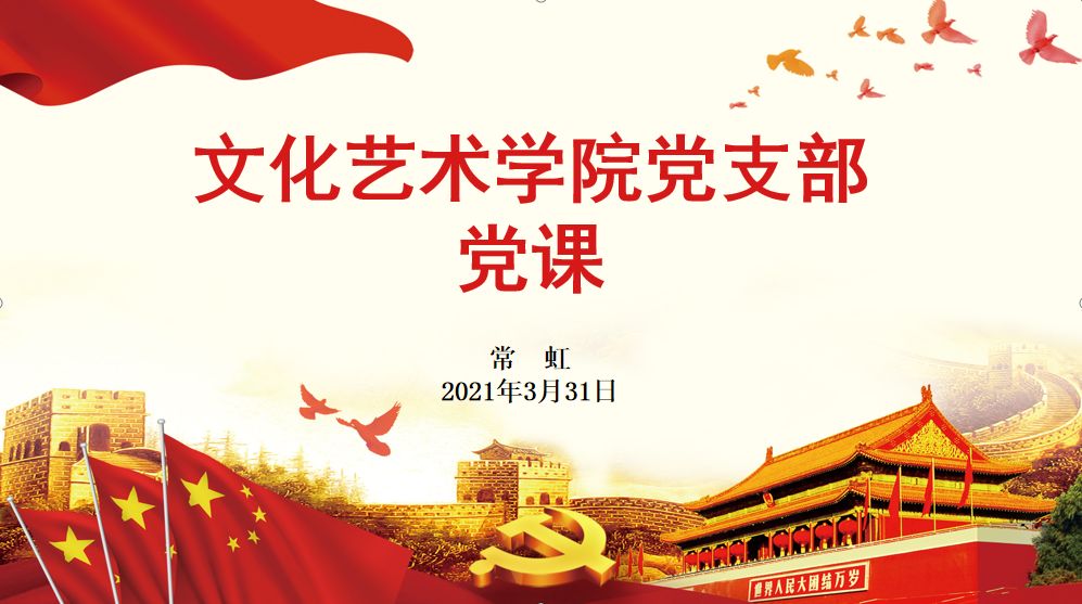 3月31日下午,文化艺术学院党支部在艺术楼207会议室开展三会一课活动,由党支部副书记常虹同志以“党员发展流程规范化”为主题给全体党员上党课。