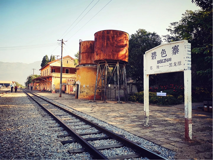 14日上午同学们抵达实训第⼀站——碧⾊寨。碧⾊寨是法国⼈修建的个碧⽯铁路线上的⼀个站点,这⾥⼤多是法式建筑,⻛景优美,是著名电影《芳华》取景地。这里是中国近代史上最早的的火车站之一,火车经这里北上可以到达昆明,南下可以直达越南碧色寨车站占地约2平方公里,至今仍在运营中。对研究滇越铁路和中国铁路发展史具有重要价值。
