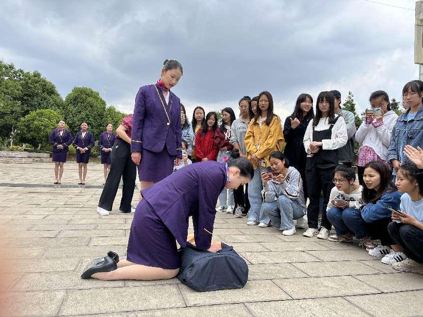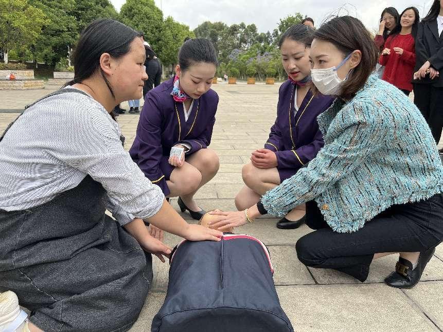 5月13日,龙头街实训基地高速铁路客运服务专业2020级同学在教学楼前以一段优雅整齐的礼仪操开场,吸引了路过同学与老师,展现专业形象。随后,现场演示了遇到紧急情况时的救援,为伤者进行心肺复苏与人工呼吸,并邀请围观的同学一起进行参与学习,真正学有所获、学以致用。