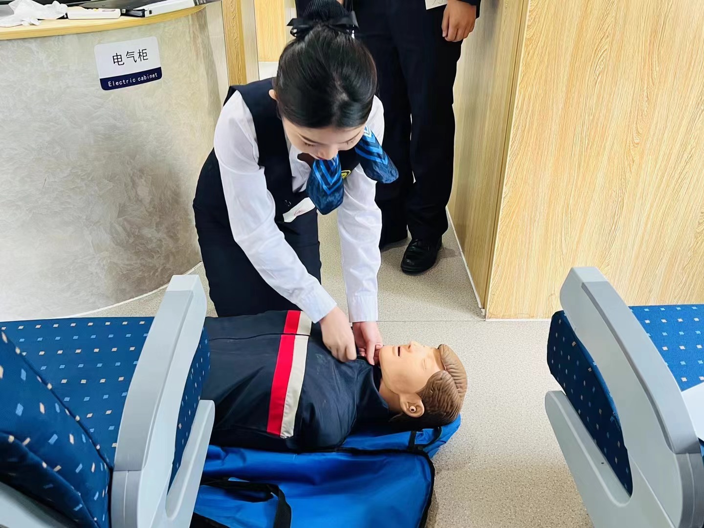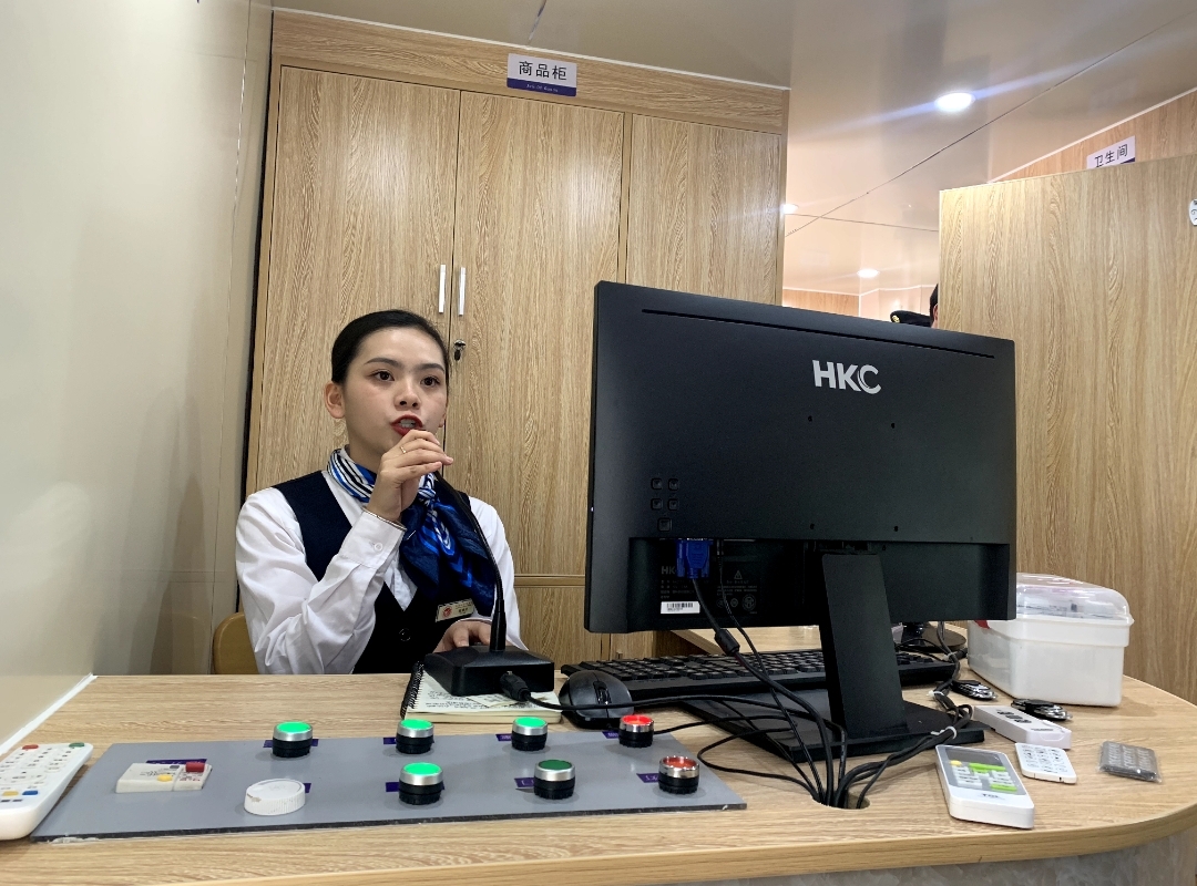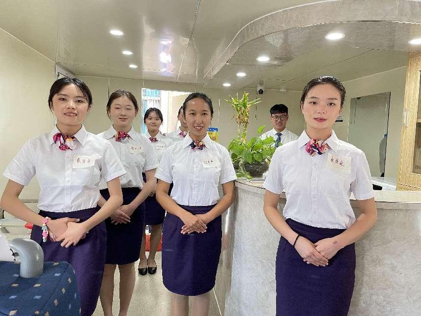 5月13日,高速铁路客运服务专业同学开展职业能力展示活动。首先由2021级同学舞蹈开场进行专业风采展示,随后2018级五年制同学带领大家参观高铁站房实训室与高铁模拟舱,体验高铁乘车之旅,并在车上进行了车上卫生间起火与旅客在车厢内晕倒进行抢救的应急演练。乘务员们在遇到紧急突发情况时,有条不紊地进行紧急救援与疏散旅客,体现高铁学子们较强的专业素养与能力。