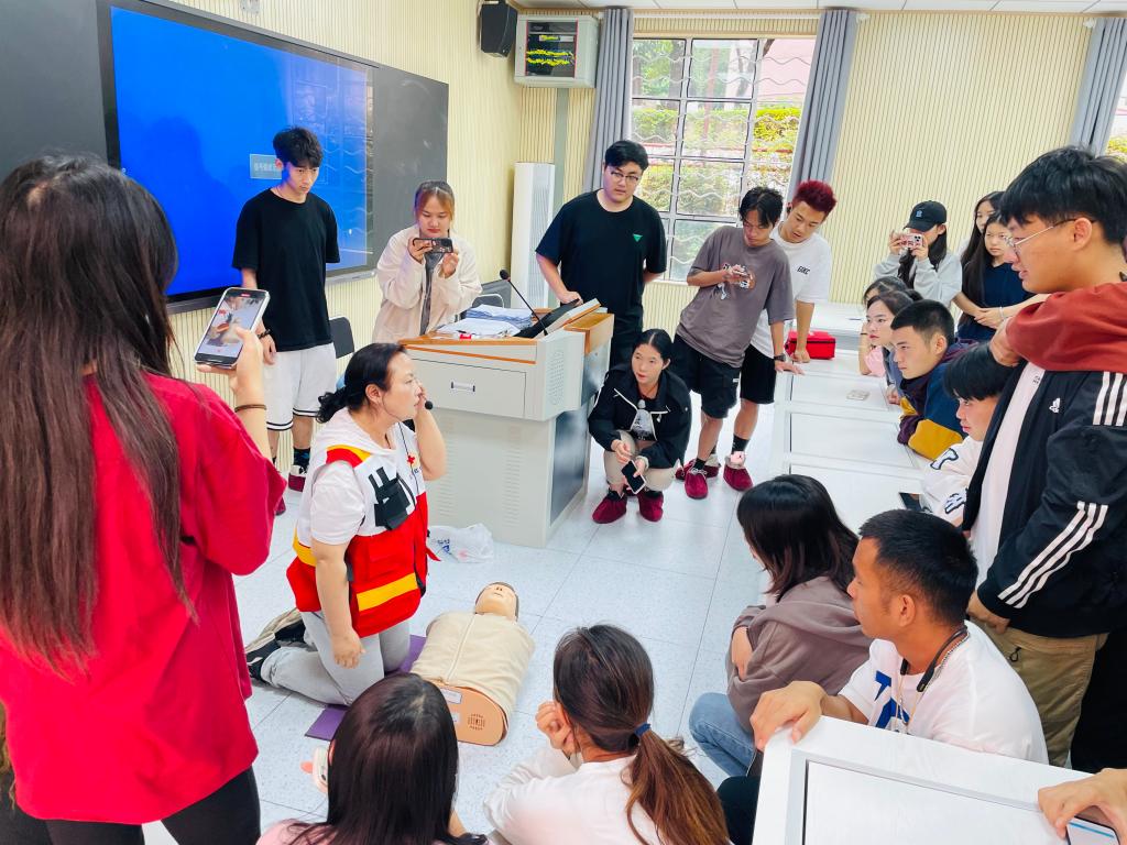 2022年5月9日、13日、14日、21日bevictor伟德国际1946官网文化艺术学院联合昆明市五华区红十字会共同开展了三场应急救护员取证考核培训。来自空乘专业共145名学生和老师参加了此次救护员培训,共134名学员考核合格。