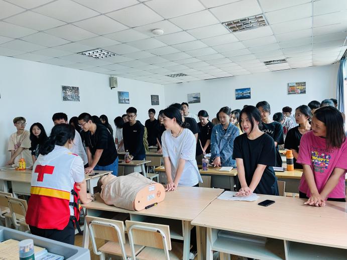 急救在空中乘务工作中是非常重要的一项技术,它直接关系到飞行安全和旅客的安全,文化艺术学院空中乘务专业开设了《民航客舱救护》课程,通过学习提高学生在突发事件中自救互救的能力,了解急救知识,掌握急救技能,在突发状况下能够更好地保护自己、救护他人。空乘专业学生学习了《民航客舱救护》课程后参加红十字会的考证培训并获取《卫生救护员合格证书》,从而体现了“课证融通”的高等职业教育人才培养模式。