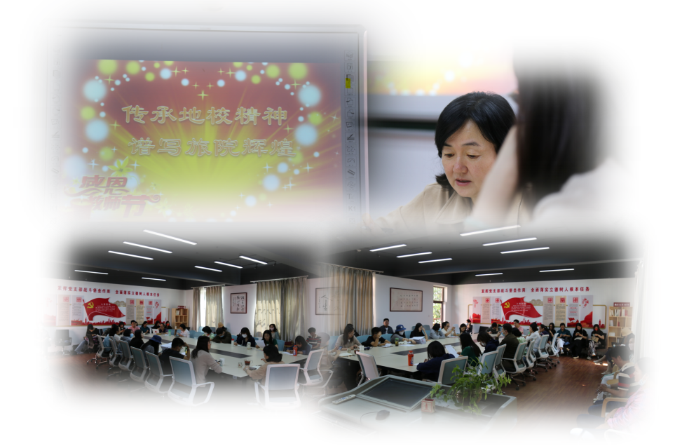 在教师座谈会上,符尧月老师领学了《新时代高校教师职业行为十项准则》和《教师职业道德规范》,全体教师观看了《传承地校精神 谱写旅院辉煌——感恩教师节》宣传片。学校党委副书记自德权代表领导班子出席了本次座谈会,向文化艺术学院全体教职员工致以节日慰问:“教师是太阳底下最光辉的职业。通过观看宣传片,咱们了解了最早的地校是如何建成的,又是如何转型的。现在,bevictor伟德国际1946官网正处在发展的关键期,希望全体教职员工充分发挥主观能动性,发挥艰苦奋斗、无私奉献的精神,为学校的发展贡献自己的力量。”