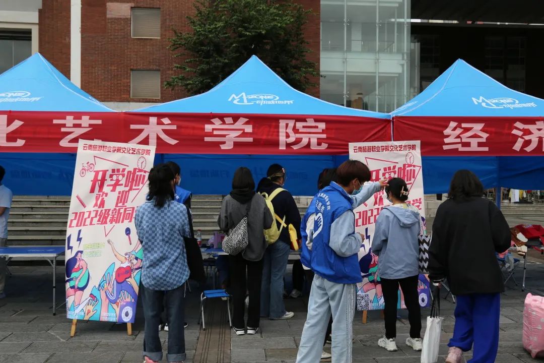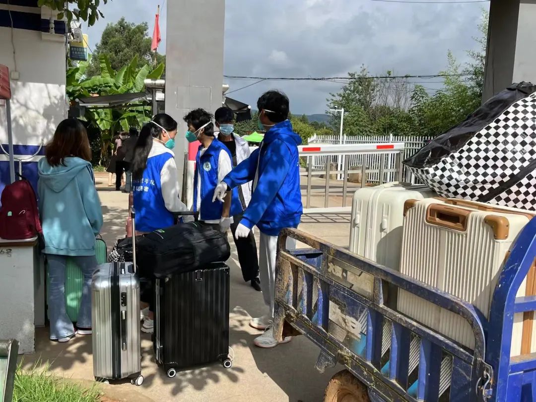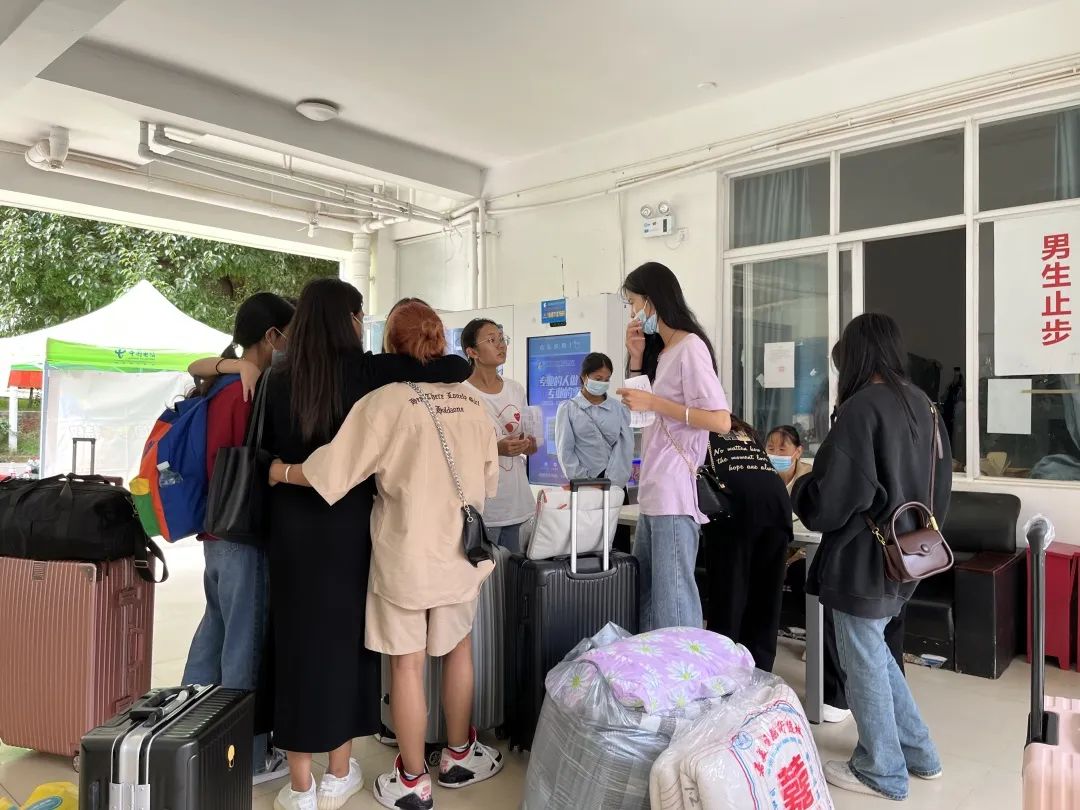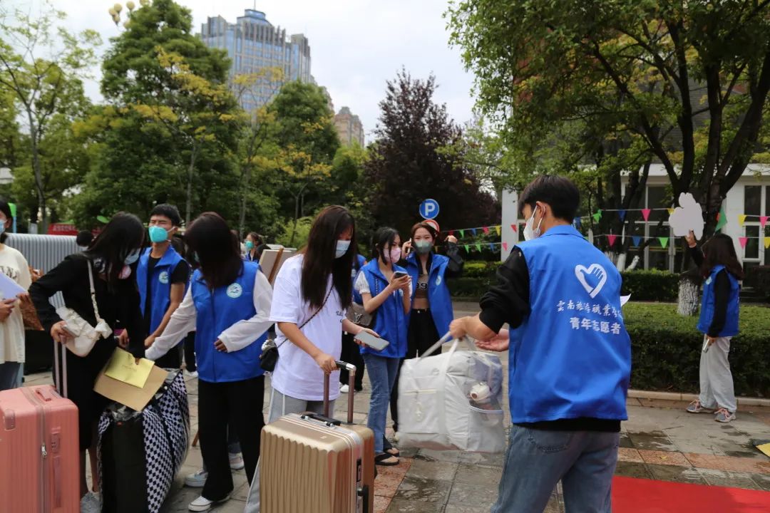 “蓝马甲”穿梭在校门口和报到点之间,将每一位萌新接引至相关报到地点;“橙马甲”穿梭在报到点与学生公寓之间,将每一位萌新送至他们在大学
