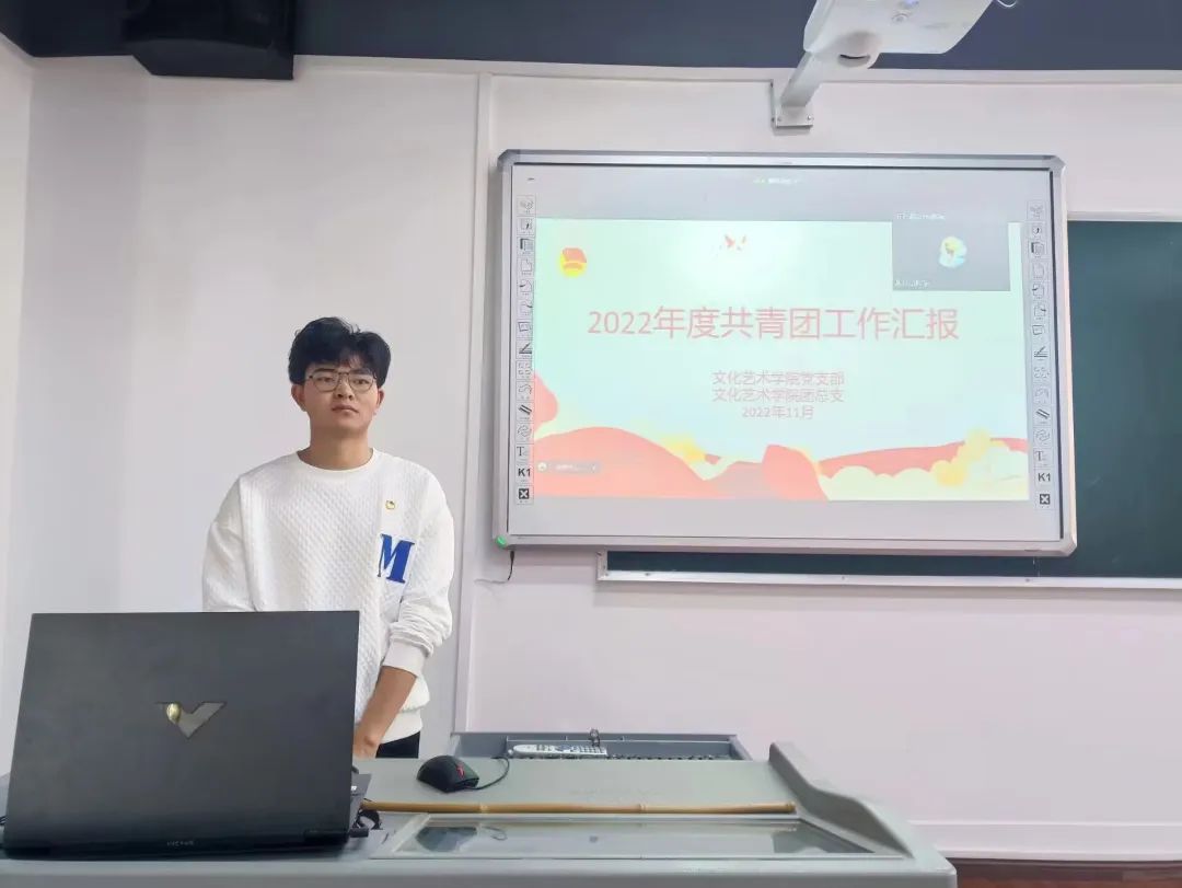 团总支副书记邓英姿代表团总支向党支部进行述职。她分别从指导思想、具体工作内容、工作的启示三个方面作报告,表示文化艺术学院团总支将继续努力,协助团总支书记、学院老师,团结各部门学生干部,一起为文化艺术学院发展谱写更加辉煌的青春篇章。