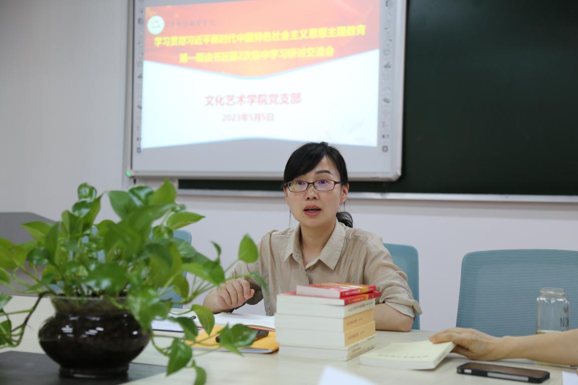 文化艺术学院党支部副书记常虹、院长王雪梅、副院长刘瑞琴依次进行了研讨交流发言。她们的发言聚焦党的创新理论思想对教师信仰信念的坚定作用、党建对专业建设的示范引领作用、全面认识现代职业教育的多重作用等方面。