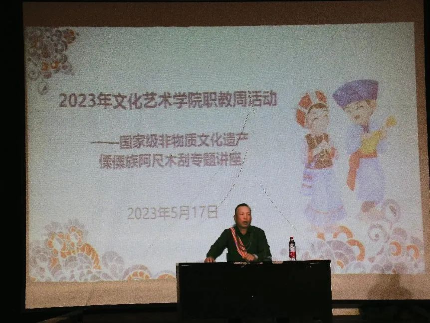 为提高同学们传承非遗文化的意识,“国家级非物质文化遗产傈僳族阿尺木刮专题讲座”于2023年5月17日在高校教学实训基地举行,国家级非物质文化遗产代表作项目“傈僳族阿尺木刮”的传承人李碧清担任主讲老师。