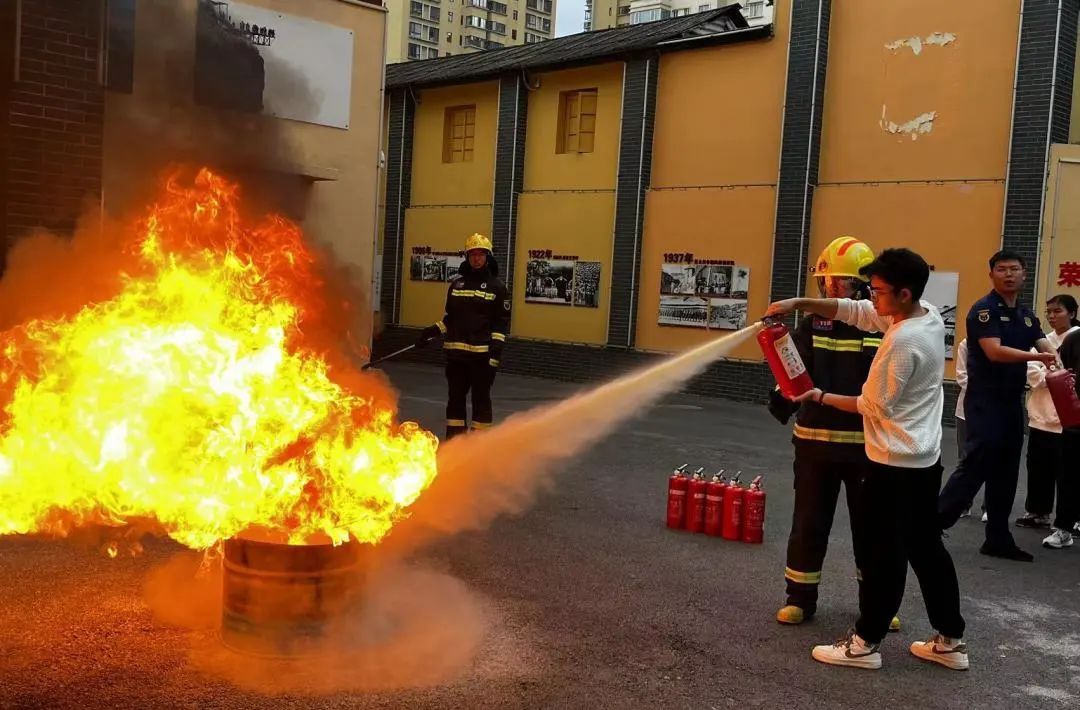 活动中,团员们在消防讲解员的带领下了解“百年消防”历史发展历程,听取了防灾减灾、应急避险、消防法普及、校园消防知识讲解,观摩消防人员使用灭火器材演练,了解和掌握防火、灭火常识,并亲身体验灭火器材实战操作。