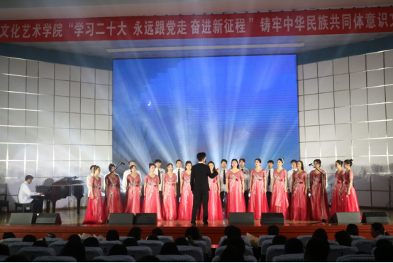 蝉鸣绕枝响,绿树已成荫。又一个夏天来临了。21级的同学即将带着恋恋不舍的牵挂,以龙泉路268号为原点出发,奔赴人生下一阶段的星辰大海,书写崭新的故事。6月15日,文化艺术学院音乐教育、民族表演艺术两个专业、三个班级的同学,在学校报告厅隆重举行了“学习二十大 永远跟党走 奋进新征程”铸牢中华民族共同体意识暨结业文艺汇演。经过两年的专业学习与沉淀,在表演艺术教研室相关专业老师的指导下,为观众们带来了一场精彩绝伦的青春盛宴。