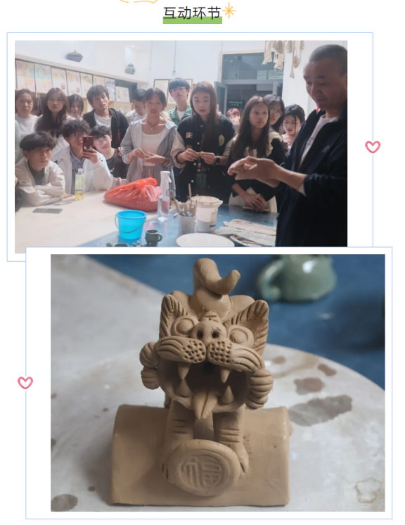 在这次活动中,我们不仅可以欣赏到张才大师的精湛技艺,还可以亲自动手,尝试制作属于自己的瓦猫陶艺作品。这是一次难得的、让我们近距离感受非遗文化魅力的机会,同时他展示了瓦猫的制作流程,并向同学们介绍了祖祖辈辈传承瓦猫的土陶手艺,并带来了自己的拿手作品吸引了众多师生驻足观赏。同时,还设有非遗知识讲座和互动体验环节,让师生们更深入地了解非遗文化的内涵与价值。